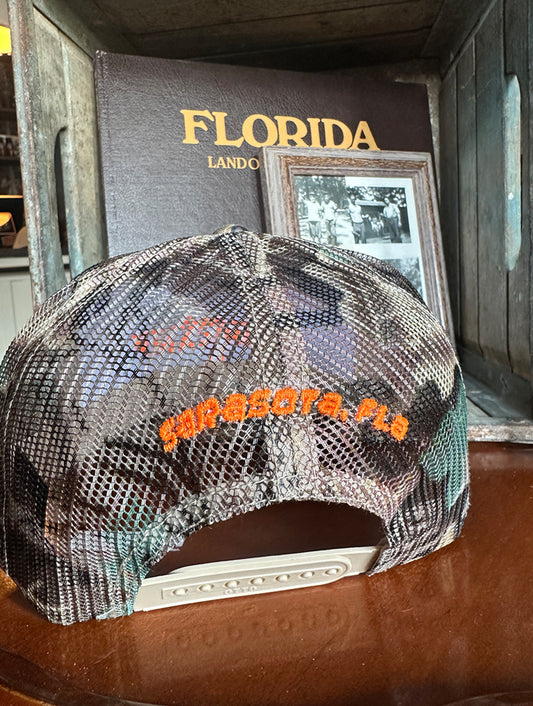 Owen's Fish Camp Camo Hat - Camo/Orange