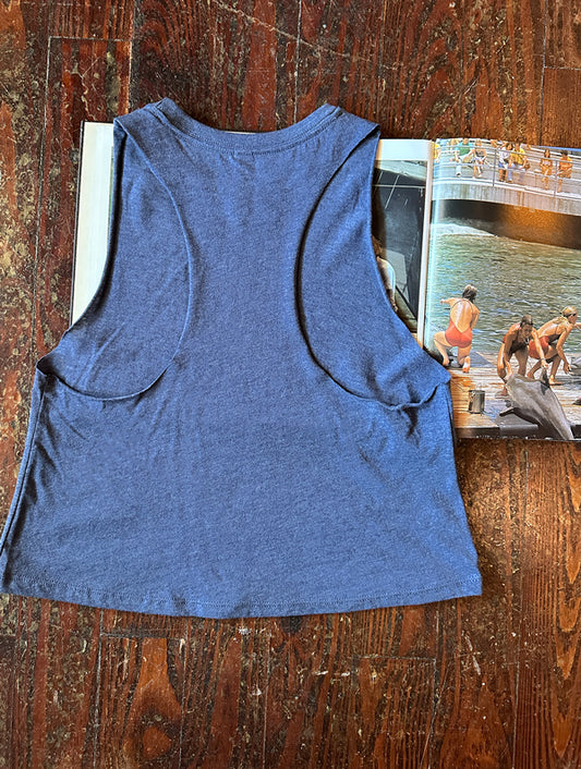 Owen's Fish Camp Racerback Muscle Tank - Navy/Lilac