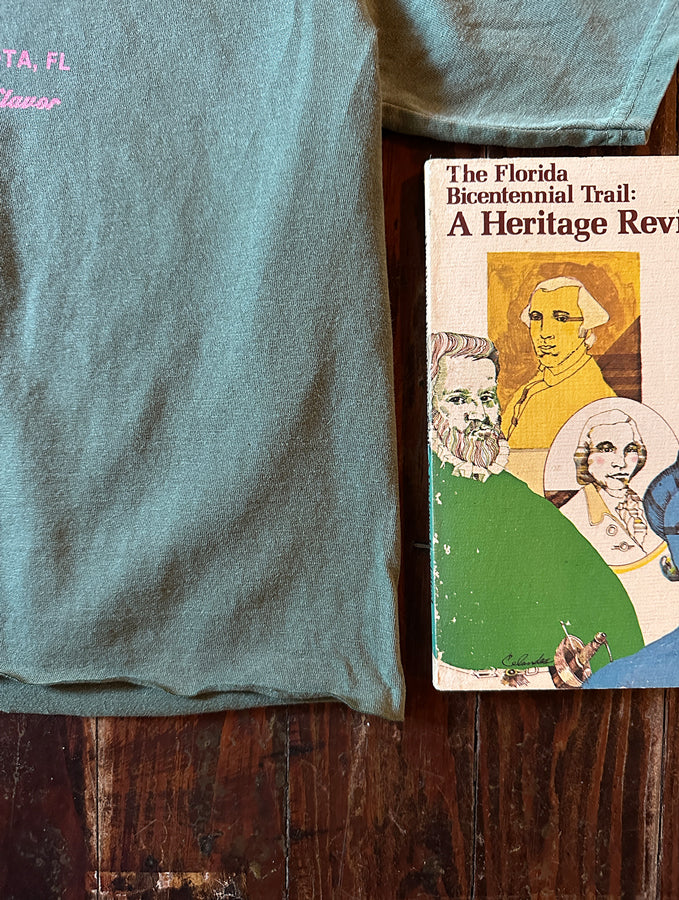 Owen's Fish Camp's signature "Low Country Spirit, high country flavor" motto. The basil green base pairs perfectly with a fun pink contrast, while the raw hem adds an effortlessly cool edge. Perfect for layering or wearing solo, this tee brings laid-back charm and personality to your everyday rotation.