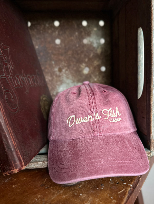 Owen's Fish Camp Script Dad Hat - Faded Maroon